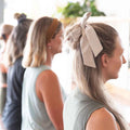 Trage die Schleife für einen verspielten, trendigen Look, entferne sie, um ein elegantes, kleines Haargummi zu präsentieren, oder verwende das Band, um ein wunderschönes, klassisches Schleifen-Stirnband zu binden (die Schleife kann auch im Nacken getragen werden).