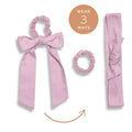 Entdecke das dreifach tragbare Accessoire, nach dem sich dein Haar schon lange sehnt. Es ist Schleife, Haargummi und Haarband – alles in einem traumhaften Satin-Design.