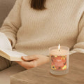 Handgemachte, natürliche Sojawachskerzen in einem mattierten Glas mit Holz-Deckel.