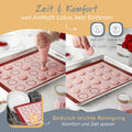 Der wichtigste Faktor für die Gelingsicherheit ist, dass deine Macarons Kekse beim Anheben nicht kaputt gehen. Die spiegelglatte Oberfläche der Silikonmatte für Macarons ist so entwickelt, dass sich die Macarons nach dem Auskühlen von selbst lösen.