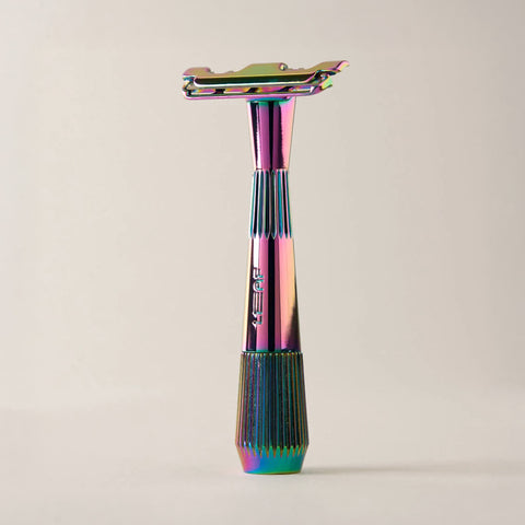 This revolutionary razor made of stainless steel and zinc gives you the usual shaving feeling without the usual plastic.