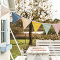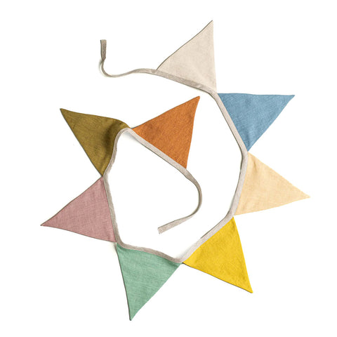 Linen garlands are a perfect decorative detail for any child's room. This linen garland with eight colorful, double-sided triangles will brighten up any room.