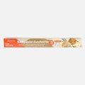 Papier sulfurisé prédécoupé non blanchi (38 × 42 cm, 30 feuilles), siliconé des deux côtés. Résistant à la chaleur jusqu'à 220 °C, réutilisable. Certifié FSC et Nordic Swan.