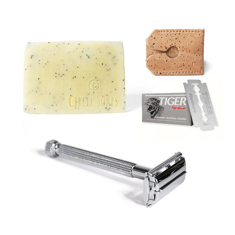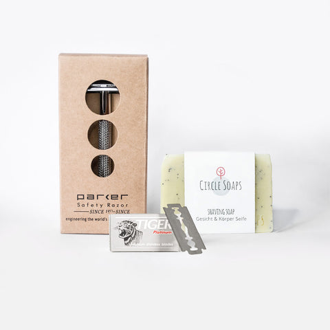 Dein Starterpaket zur nachhaltgien Rasur. Mit der Rasierseife gleitet dein Rasierhobel einfach über deine Haut. Und dank der Butterfly Öffnung lässt sich der Hobel super einfach reinigen.